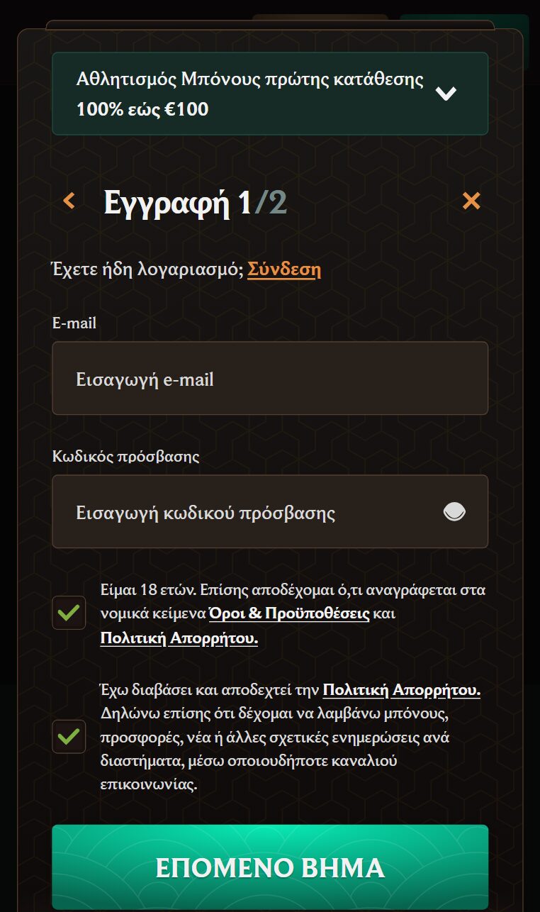 Το μπόνους εγγραφής το δικαιούνται όλοι όσοι ανοίγουν λογαριασμό στη στοιχηματική και πραγματοποιούν κατάθεση τουλάχιστον 20 ευρώ. Από τις μεθόδους πληρωμών, εξαιρούνται οι Neteller και Skrill, επομένως πρέπει να είστε έξτρα προσεκτικοί αν θέλετε να πάρετε το μπόνους αυτό. Για να αποδεσμευτεί το μπόνους στον λογαριασμό σας, πρέπει να ποντάρετε όλο το ποσό της πρώτης κατάθεσης τουλάχιστον μια φορά και σε αποδόσεις >1.50. Με το που διευθετηθούν τα στοιχήματα, θα φανεί και το μπόνους στο υπόλοιπό σας.