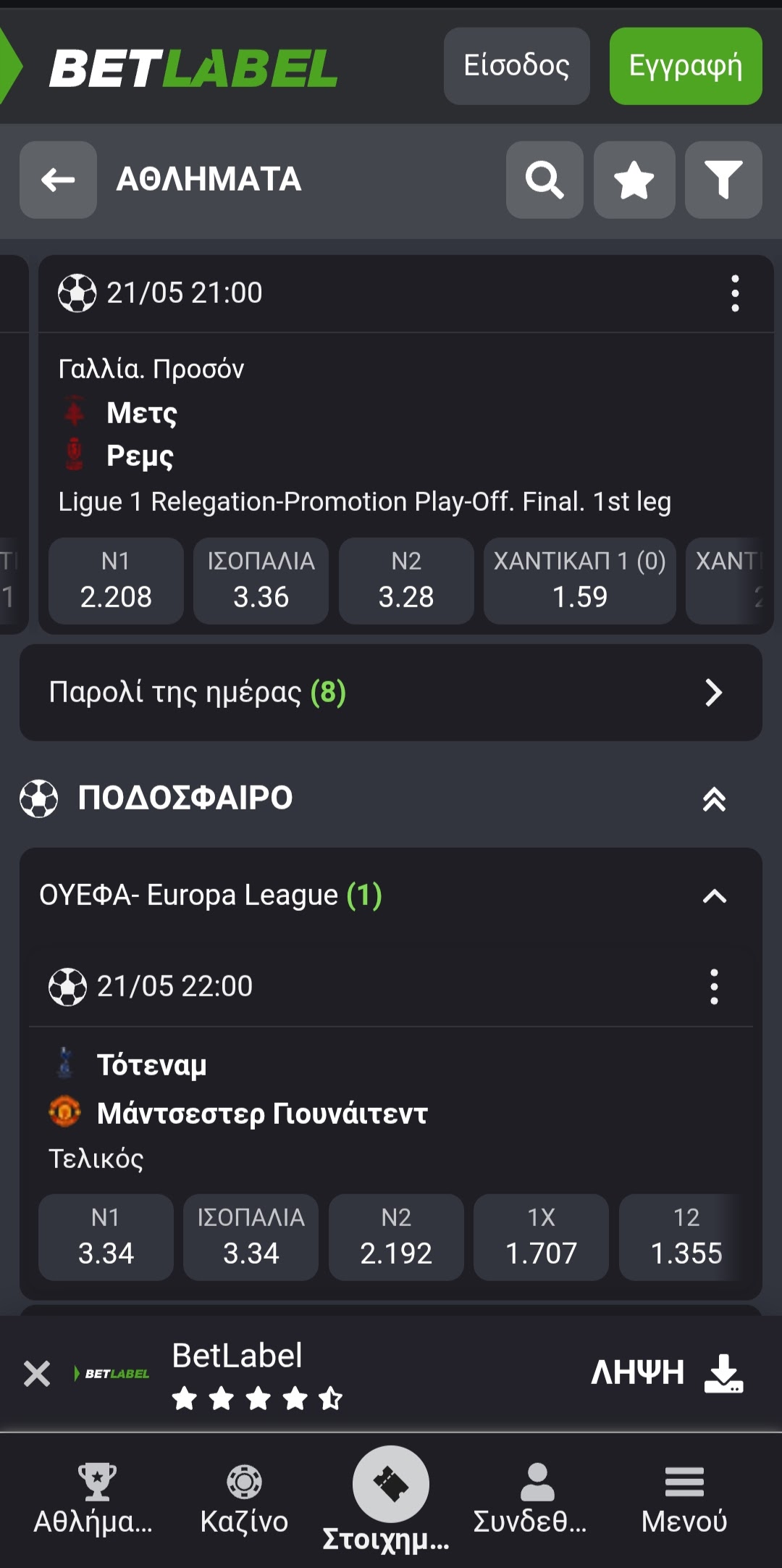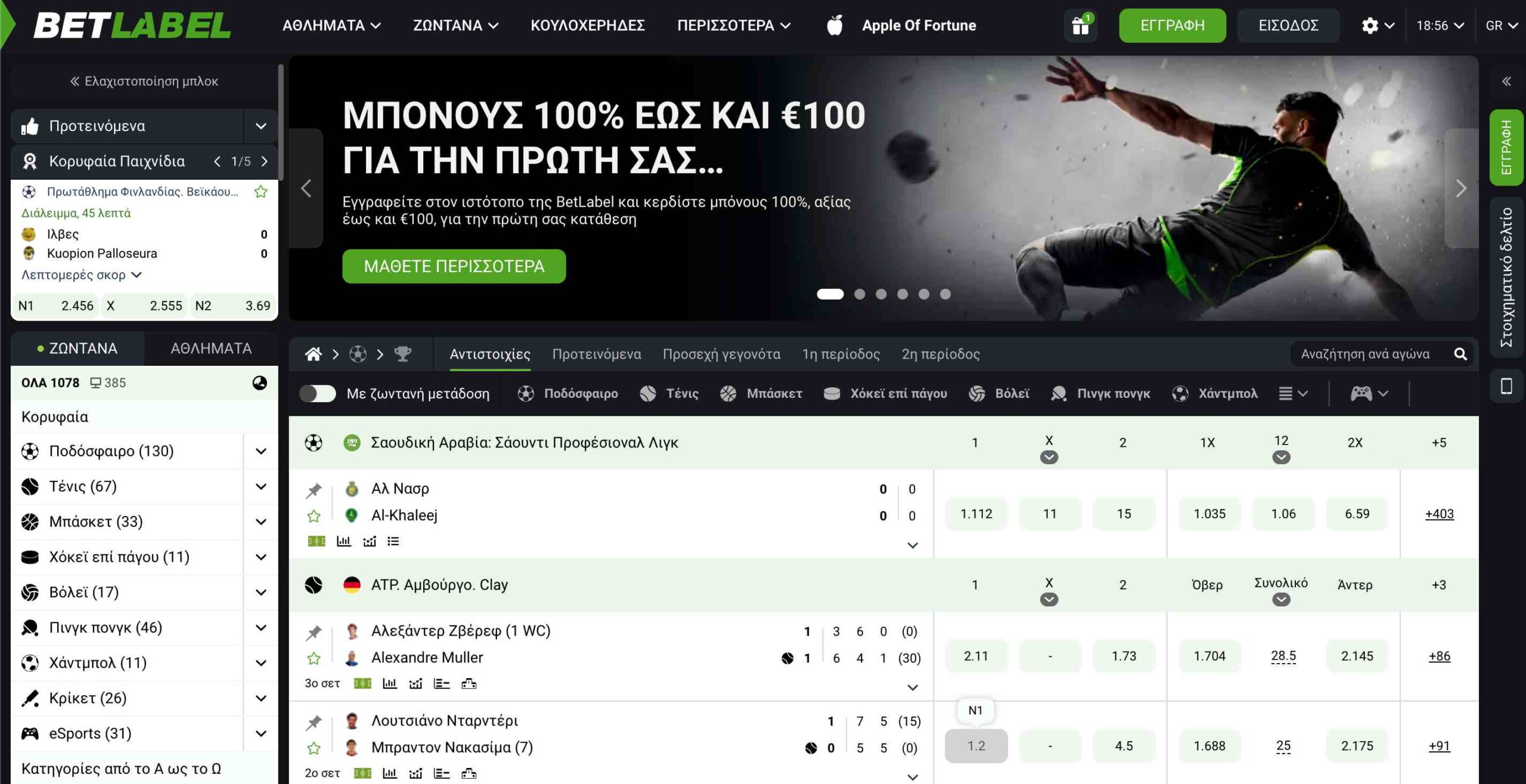 | 1 | BetLabel | 4.4/5 | Μπόνους πρώτης κατάθεσης 100% έως 100€ | Διαβάστε την αξιολόγηση |