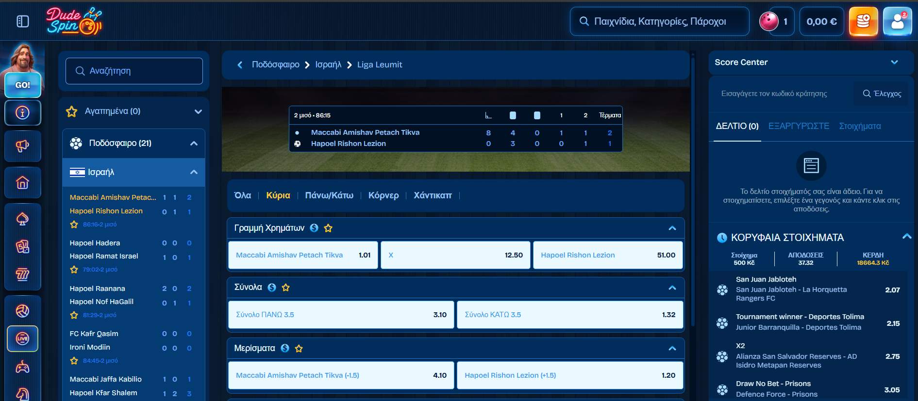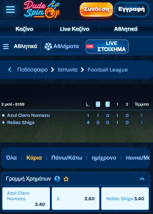 Το live betting στη στοιχηματική DudeSpin αποτελεί ένα από τα καλύτερα τμήματα της πλατφόρμας, με δεκάδες διαθέσιμα γεγονότα οποιαδήποτε στιγμή της ημέρας.