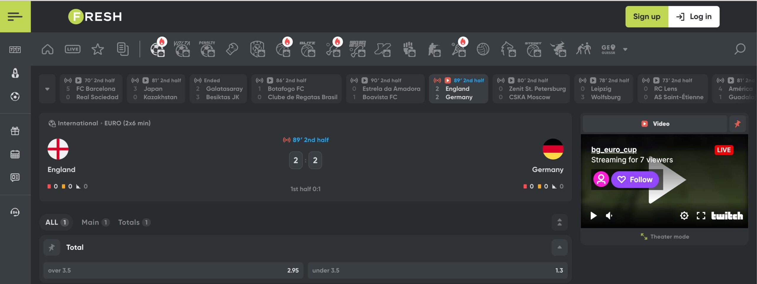 Οι φίλοι των σπορ έχουν φυσικά τη δυνατότητα να ποντάρουν και ζωντανά στα αγαπημένα τους αθλήματα. Μπορείτε να δείτε συγκεντρωμένες όλες τις επιλογές της Fresh σε live πατώντας στο σχετικό κουμπί δίπλα από τις pre-match αγορές στην αριστερή πλευρά της σελίδας.
