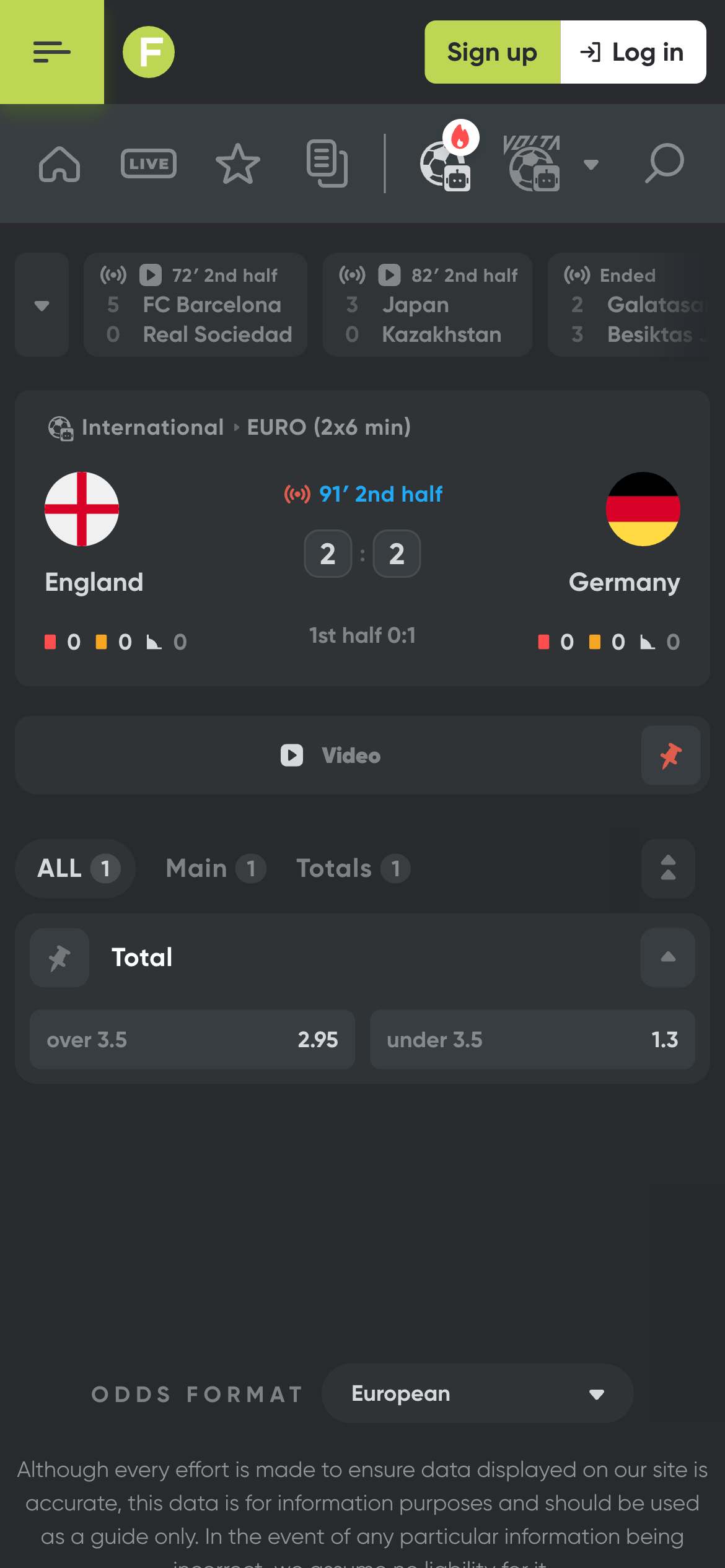 Στο πλάι της σελίδας είναι συγκεντρωμένα όλα τα διαθέσιμα σπορ, ενώ στη δεξιά πλευρά μπορείτε να έχετε πρόσβαση στις αναμετρήσεις που προσφέρουν live streaming.