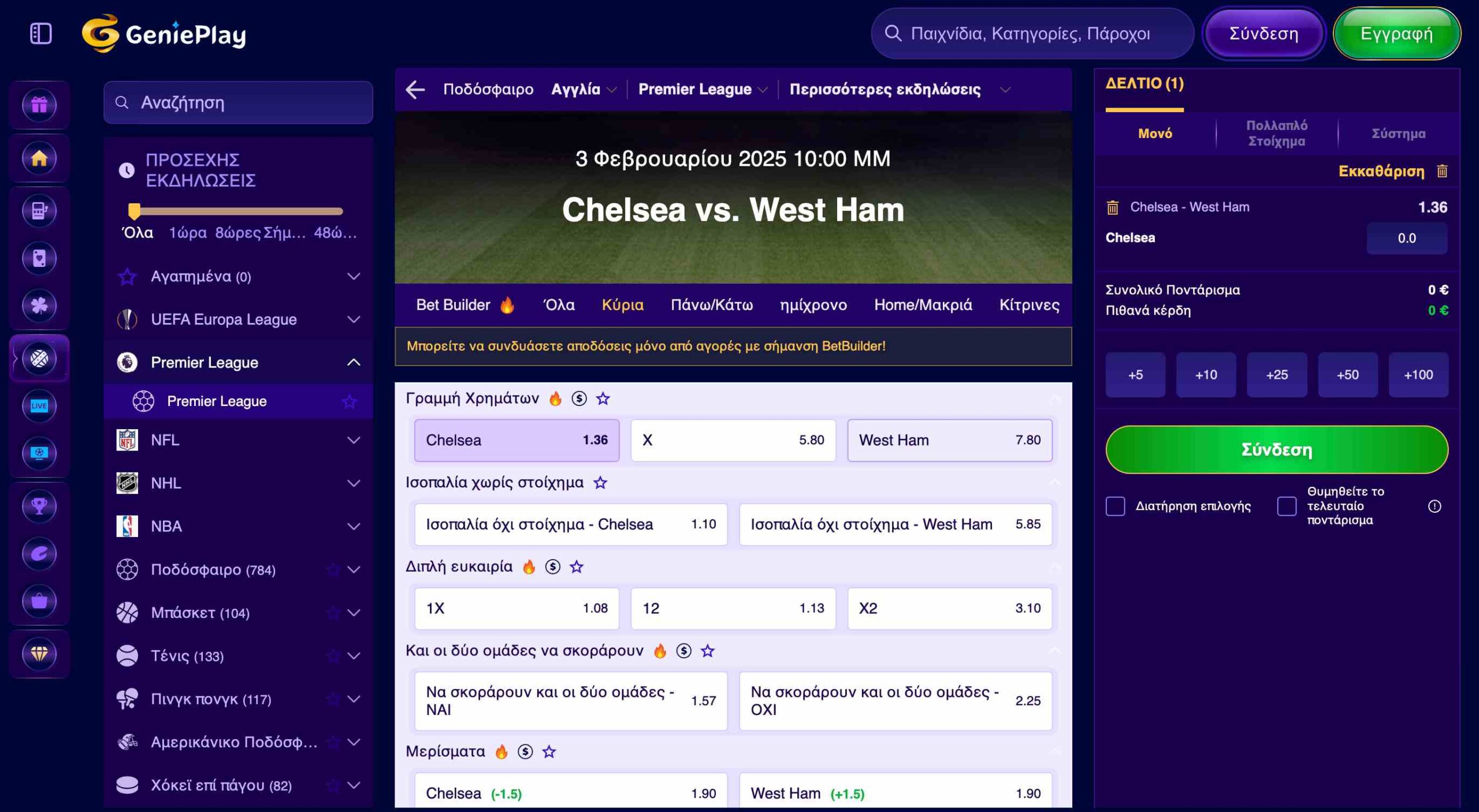 Το bet builder δε λείπει και είναι αυτό που κάνει και τη μεγάλη διαφορά στα μεγάλα αθλητικά γεγονότα και στις πολυαναμενόμενες αναμετρήσεις μεταξύ κορυφαίων αντιπάλων. Και μάλιστα μιλάμε για ένα αρκετά καλο bet builder με πάρα πολλές επιλογές για όσους θέλουν να αυξήσουν τα αναμενόμενα κέρδη χτίζοντας το δικό τους στοίχημα!