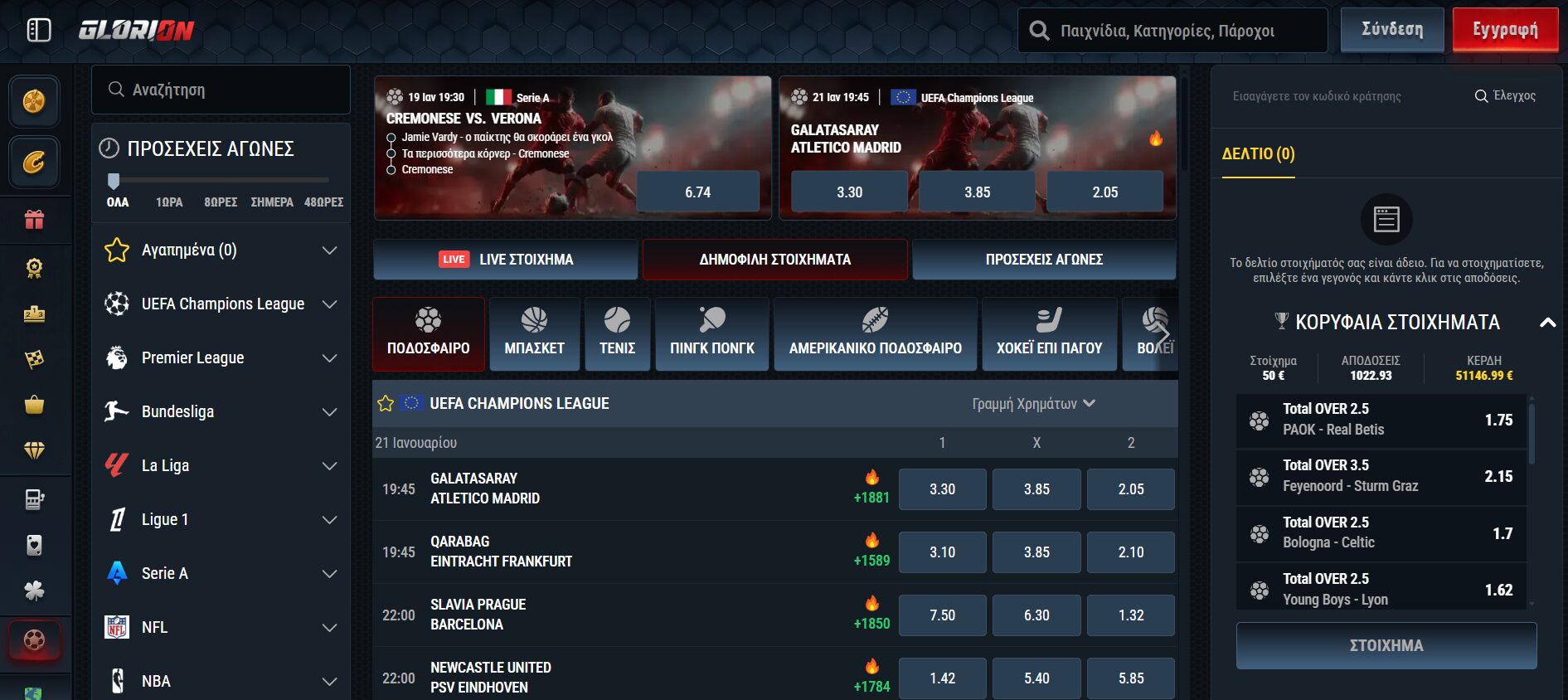 Η Glorion προσφέρει αποδόσεις τόσο σε δημοφιλή όσο και σε λιγότερο διαδεδομένα αθλήματα.