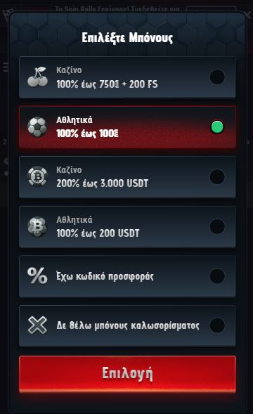 🎁 Μπόνους πρώτης κατάθεσης αθλητικών