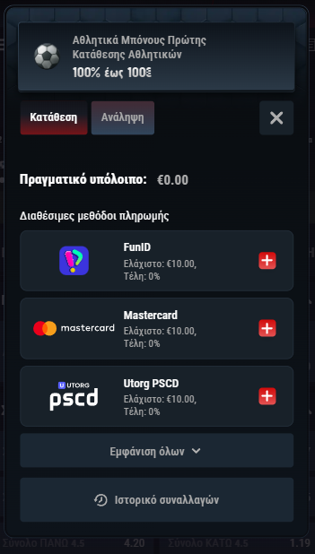 ➡️ Ωστόσο, ορισμένες μέθοδοι, όπως Neteller και Paysafe, δεν υποστηρίζουν αναλήψεις.