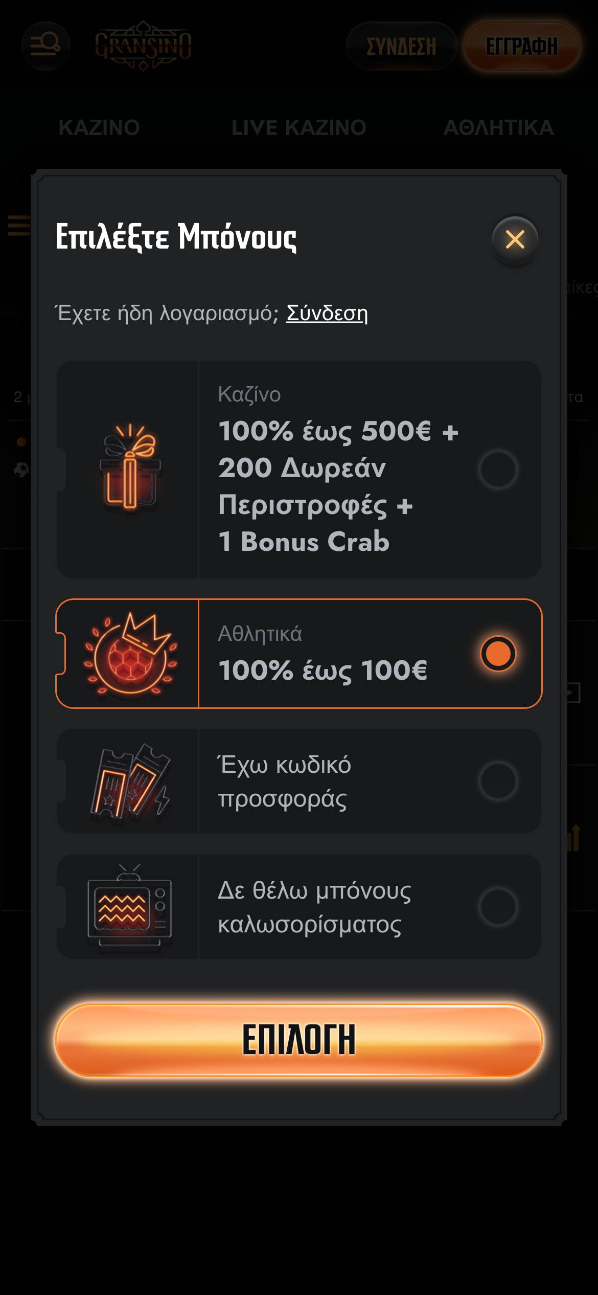 | Είδος Μπόνους | Προσφορά | Περιγραφή |