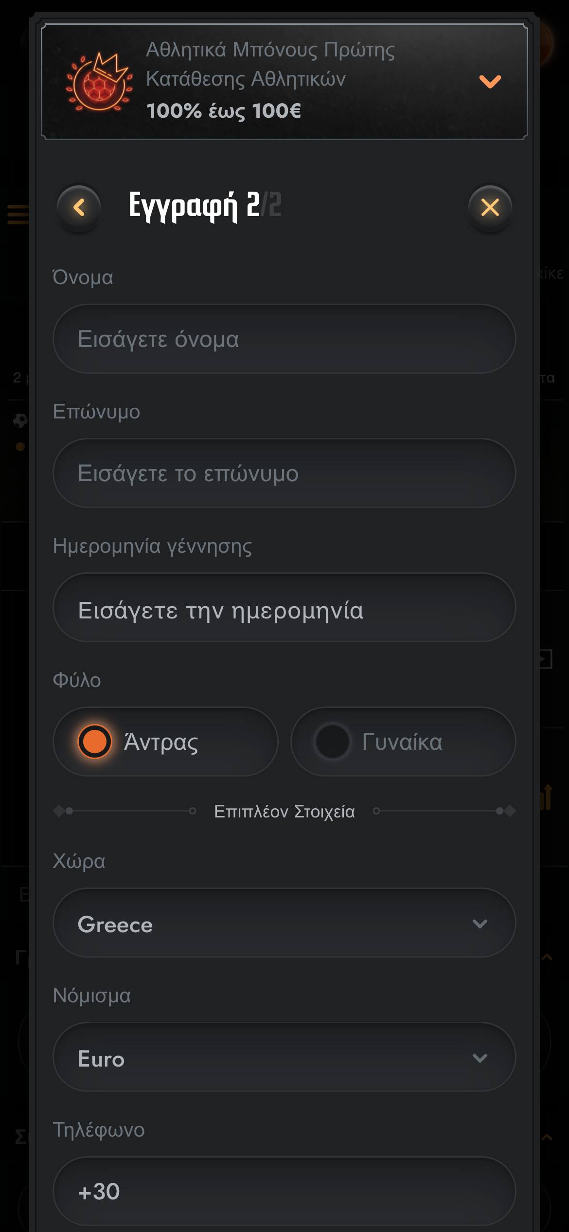 Η εμπειρία στη σελίδα ξεκινάει φυσικά από την προσφορά καλωσορίσματος. Πρόκειται για ένα μπόνους πρώτης κατάθεσης, που διπλασιάζει την πρώτη σας συναλλαγή στον λογαριασμό σας έως και κατά 100€. Για να μπορέσετε να κάνετε ανάληψη των μπόνους χρημάτων, θα πρέπει να τα τζιράρετε έξι φορές, είτε σε μονά σημεία με απόδοση τουλάχιστον 2, είτε σε παρολί με τουλάχιστον 1,5 απόδοση για κάθε σημείο.