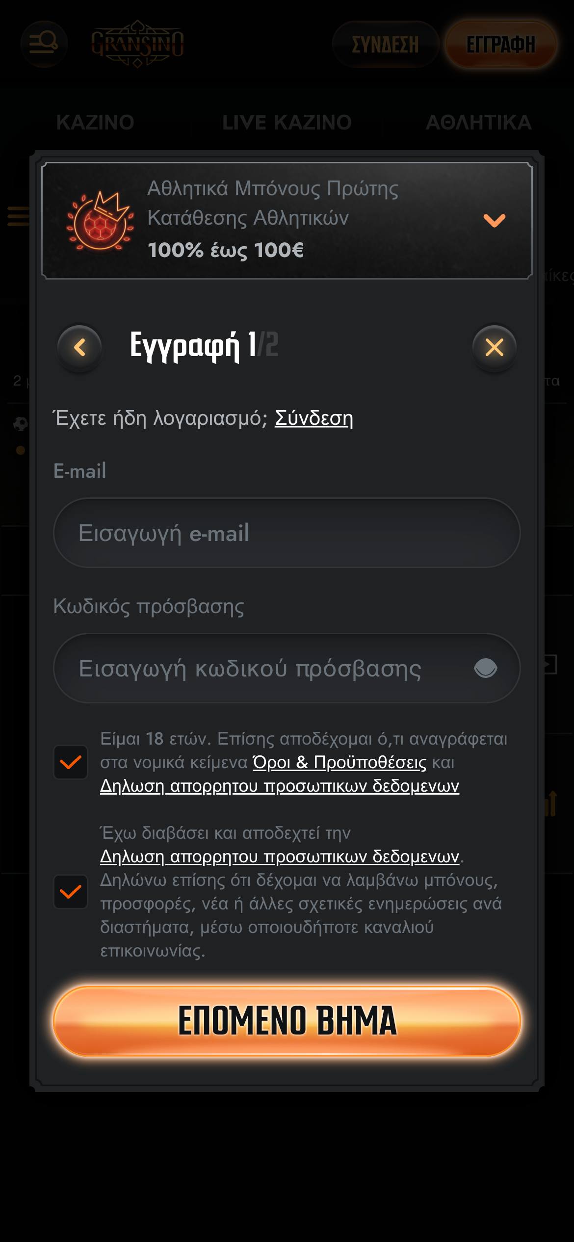 Το πρώτο βήμα για να παίξετε στη Gransino είναι φυσικά να κάνετε την εγγραφή σας. Η δημιουργία λογαριασμού μπορεί να γίνει αρκετά γρήγορα, ώστε άμεσα να ξεκινήσετε με την πρώτη σας κατάθεση.