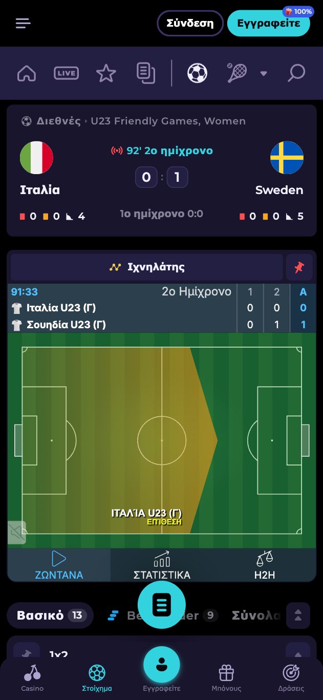 Δυστυχώς δεν υπάρχει live streaming, όμως σε όποιο βαθμό μπορεί να ισοσταθμιστεί με ένα καλό scoreboard με στατιστικά, αυτό το πετυχαίνει η συγκεκριμένη στοιχηματική. Σε γενικές γραμμες, το live betting είναι καλό, με κύριο θετικό την ποικιλία στις αγορές, όπως και η κάλυψη αρκετών γεγονότων, ιδιαίτερα στα μεγάλα και δημοφιλή αθλήματα.
