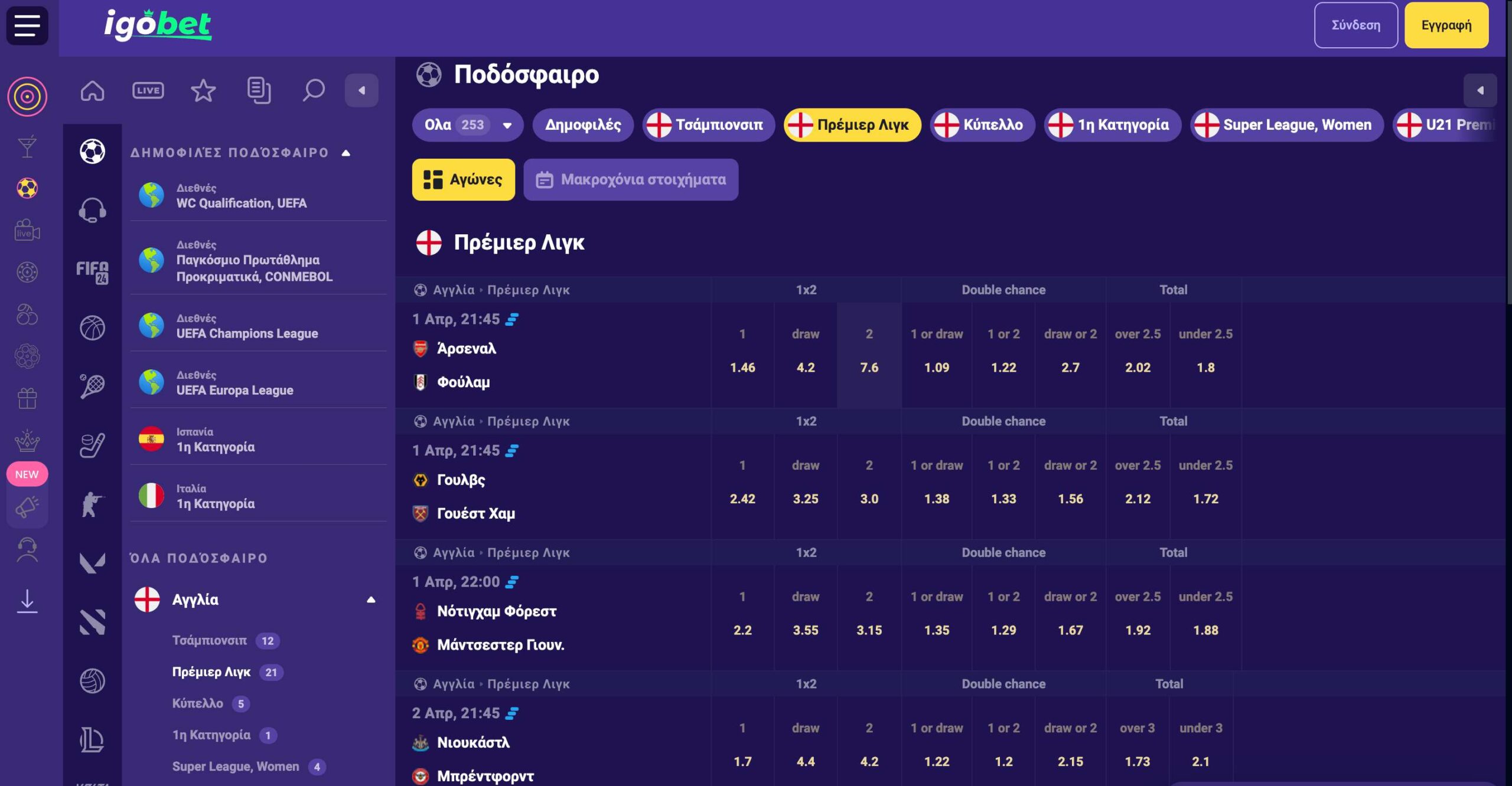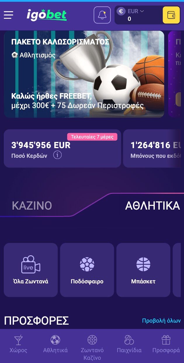 Η ποικιλία στα αθλήματα και στις αγορές στην IgoBet είναι μεγάλη και αυτό είναι και ένα από τα πολύ σημαντικά πλεονεκτήματα της στοιχηματικής. Όλα τα μεγάλα πρωταθλήματα, όλες οι μεγάλες διοργανώσεις, οι κορυφαίες λίγκες τόσο σε διεθνές επίπεδο όσο και σε τοπικό, προσφέρονται για στοιχηματισμό στην πλατφόρμα.
