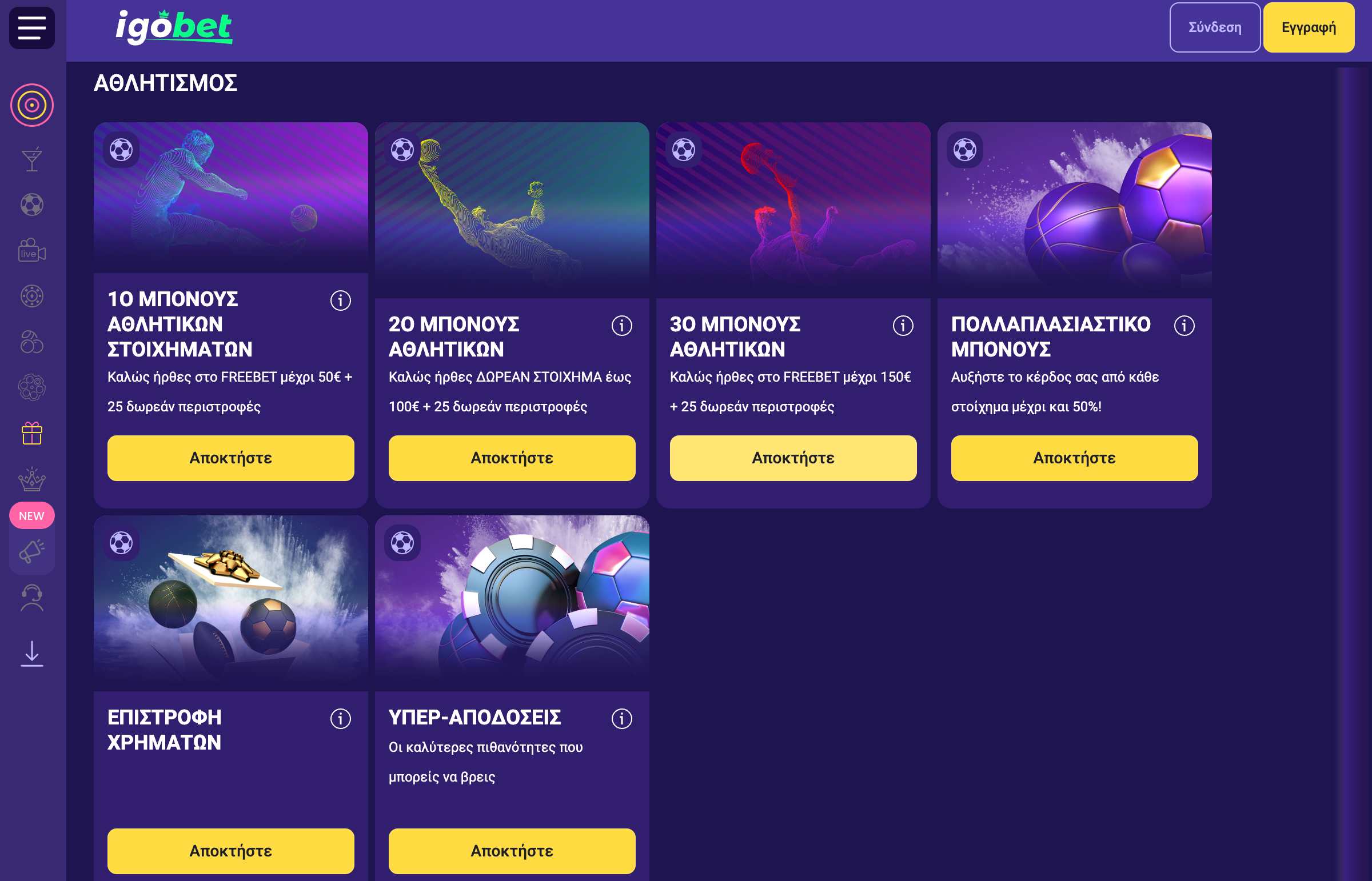 Υπάρχουν όμως κι άλλες προσφορές στη στοιχηματική IgoBet, που έχουν ενδιαφέρον. Ας τις δούμε στον παρακάτω πίνακα.
