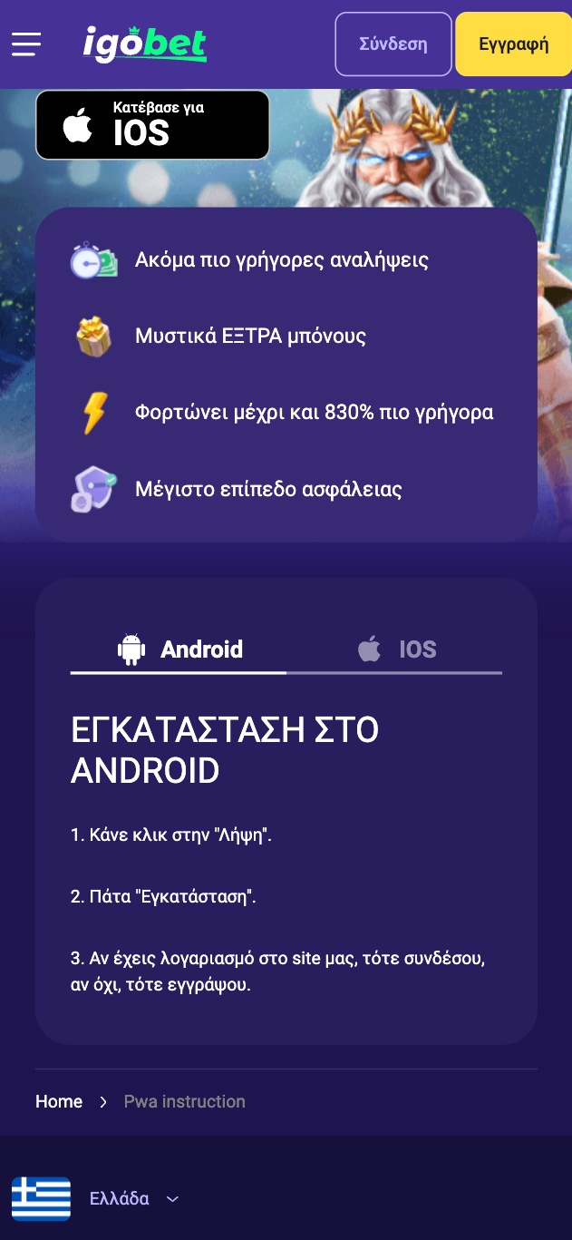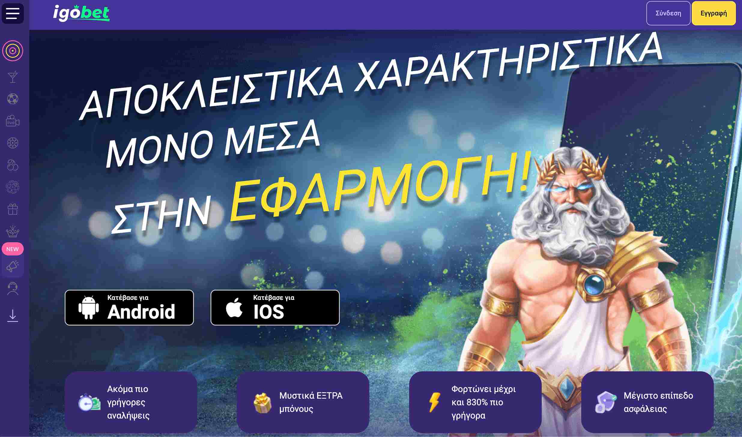 Η εφαρμογή δουλεύει πάρα πολύ καλά, όμως το δυνατό χαρτί της IgoBet είναι πως προσφέρει και έξτρα μπόνους στο app της, όπως και πολλά άλλα προνόμια: υψηλότερες ταχύτητες, πιο γρήγορες αναλήψεις μέσα από την εφαρμογή και μάξιμουμ ασφάλεια.