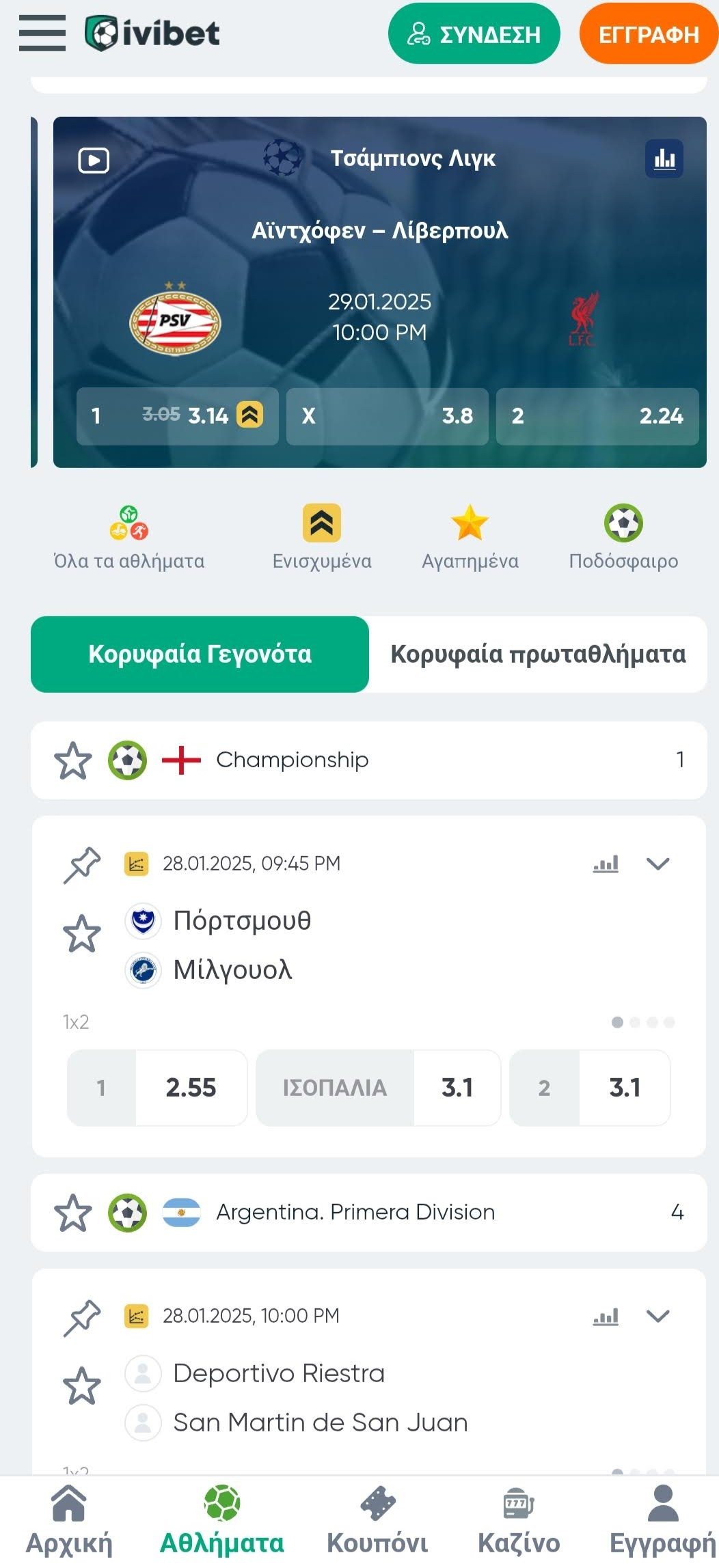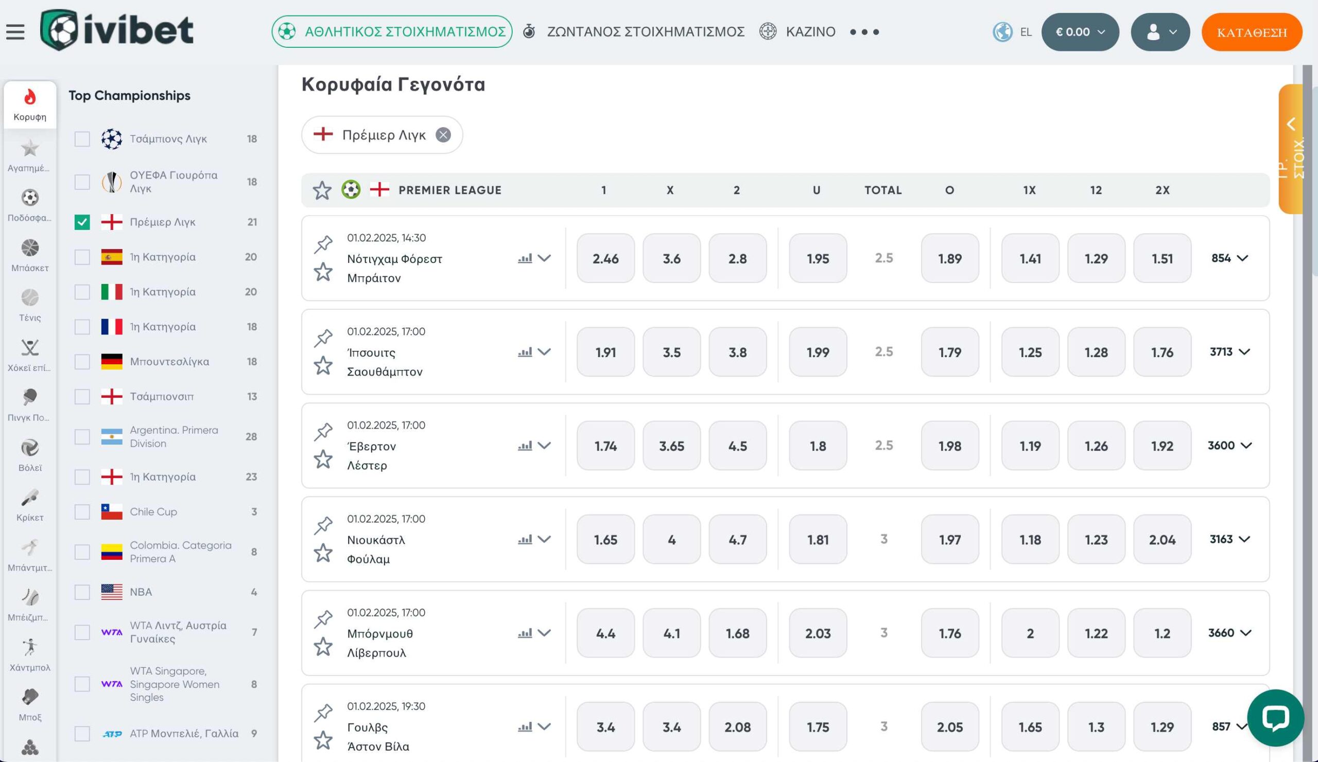 Αυτό που κάνει τη διαφορά στην περίπτωση της Ivibet, αρχικά είναι πως καλύπτει πάρα πολλές λίγκες εκτός από τις κορυφαίες -Premier League, La Liga, Bundesliga, Ligue 1, Serie A- και έτσι σας δίνει αμέτρητες επιλογές για στοίχημα. Δεύτερες και τρίτες λίγκες είναι όλες στη λίστα της στοιχηματικής και μάλιστα δεν είναι απλά παρούσες, αλλά έχουν και αρκετές επιλογές από άποψη αγορών. Οι μεγάλες διοργανώσεις των δημοφιλέστερων αθλημάτων, επίσης είναι όλες εκεί – Τσάμπιονς Λιγκ, Γιουρόπα Λιγκ, ΝΒΑ, NHL, NFL – αλλά και μικρότερες διοργανώσεις και πρωταθλήματα δε λείπουν από τα διαθέσιμα γεγονότα!