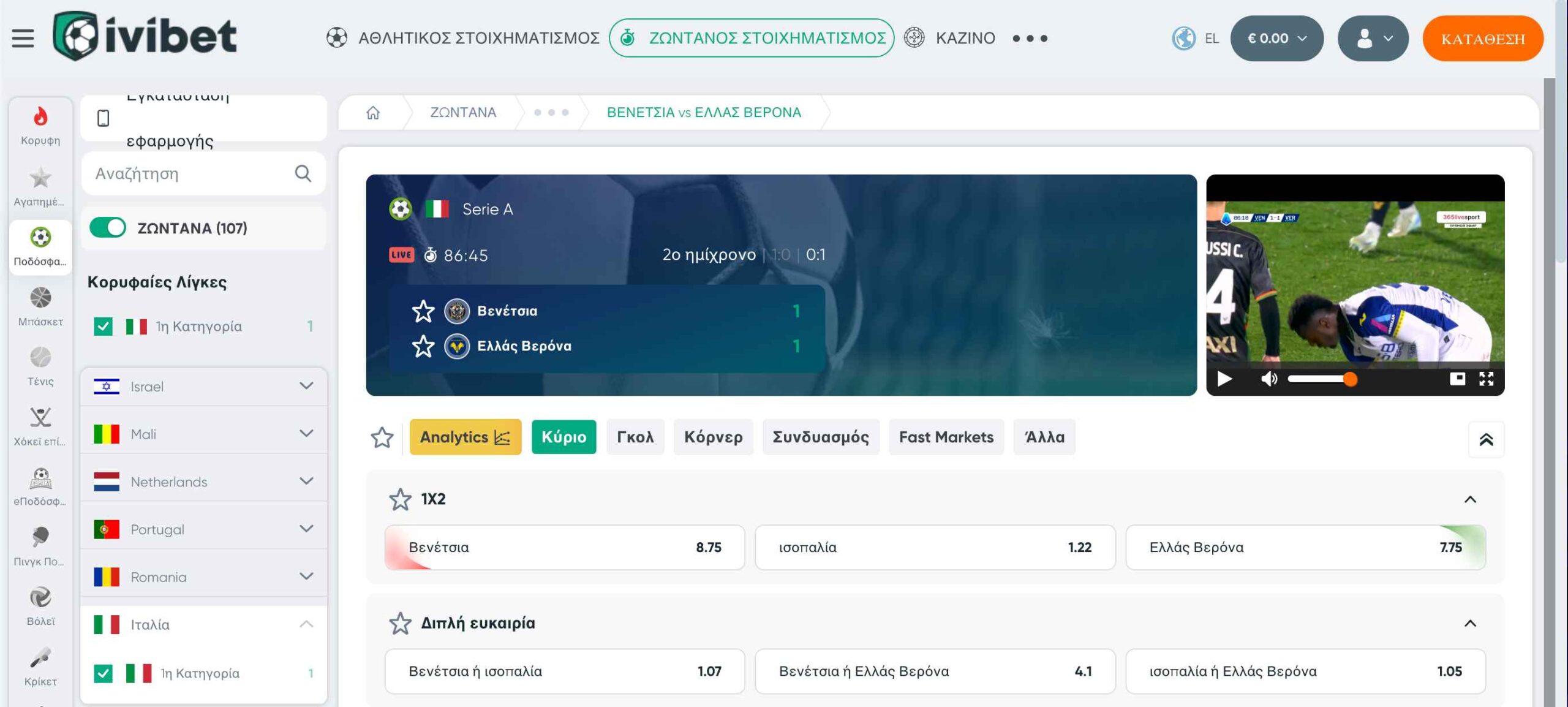 Από άποψη αγορών στο live betting, η Ivibet είναι σε ικανοποιητικό επίπεδο. Για τον μέσο παίκτη, οι αγορές που προσφέρονται είναι υπέρ-αρκετές, ενώ για τους πιο ψαγμένους ή πιο έμπειρους παίκτες, η ποικιλία ίσως φανεί λίγο περιορισμένη.