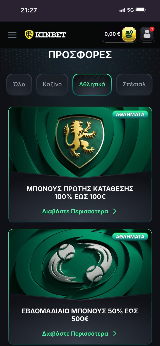 Στην KinBet θα βρείτε μια από τις μεγαλύτερες λίστες με διαθέσιμα σπορ για στοιχηματισμό και μια πολύ μεγάλη ποικιλία αγορών, ειδικά στα κορυφαία αθλητικά γεγονότα. Είναι μια νέα στοιχηματική που έχει κάνει την εμφάνιση της στην ελληνική αγορά και εμείς σας παρουσιάζουμε την πλήρη ανάλυση της!