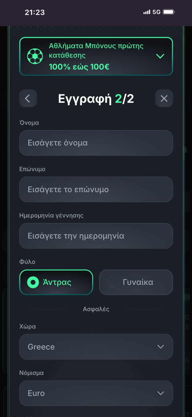 Βήμα 3ο: Συμπληρώστε όλα τα στοιχεία που σας ζητάει (όνομα, επίθετο, φύλο, ηλικία, διεύθυνση και Τ.Κ., τηλέφωνο, χώρα και νόμισμα) και πατήστε το κουμπί για να ολοκληρώσετε τη διαδικασία εγγραφής.
