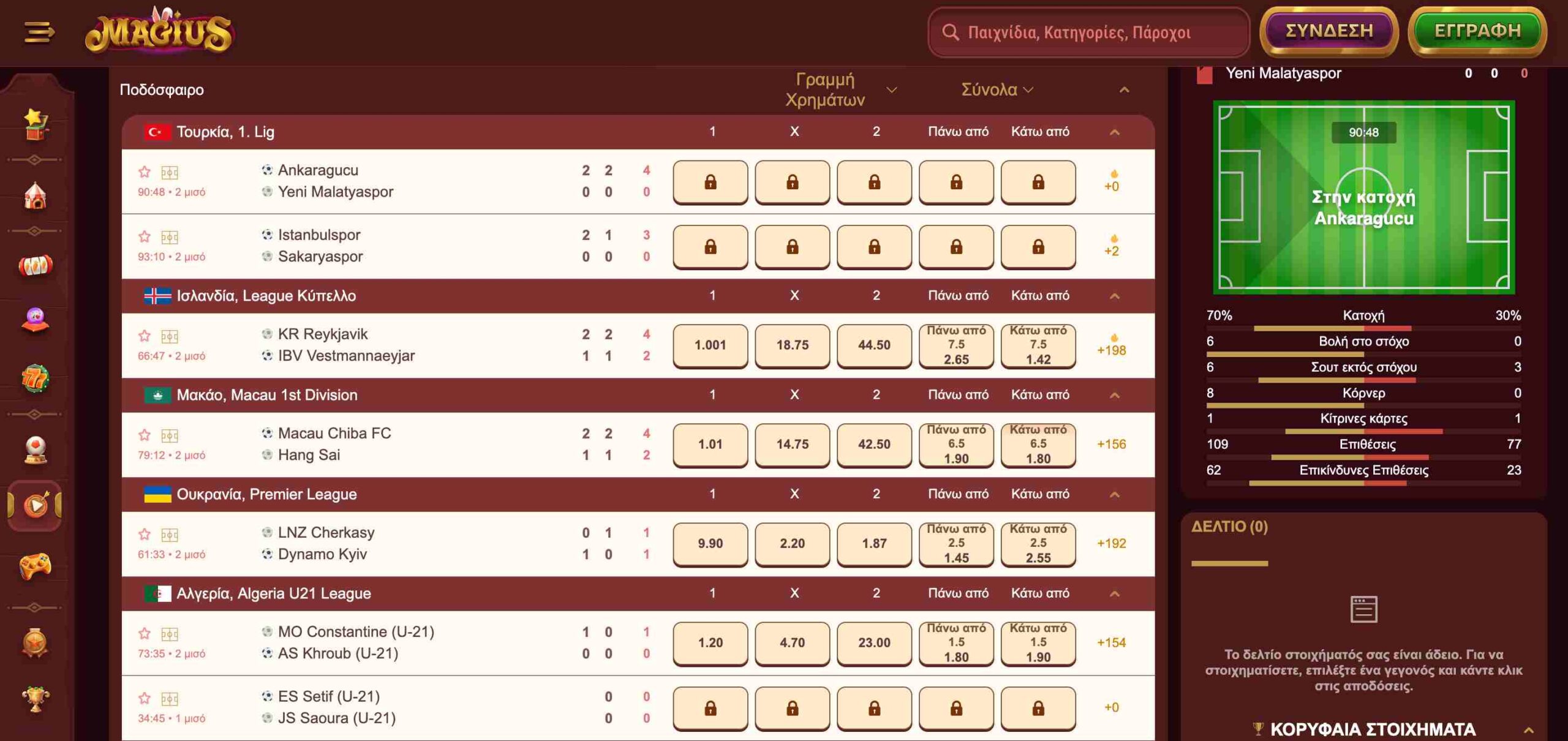 Σε γενικά πλαίσια, το live της Magius είναι καλό και μπορείτε να στοιχηματίσετε σε πολλές αγορές, ειδικά αν μιλάμε για μεγάλα ματς.