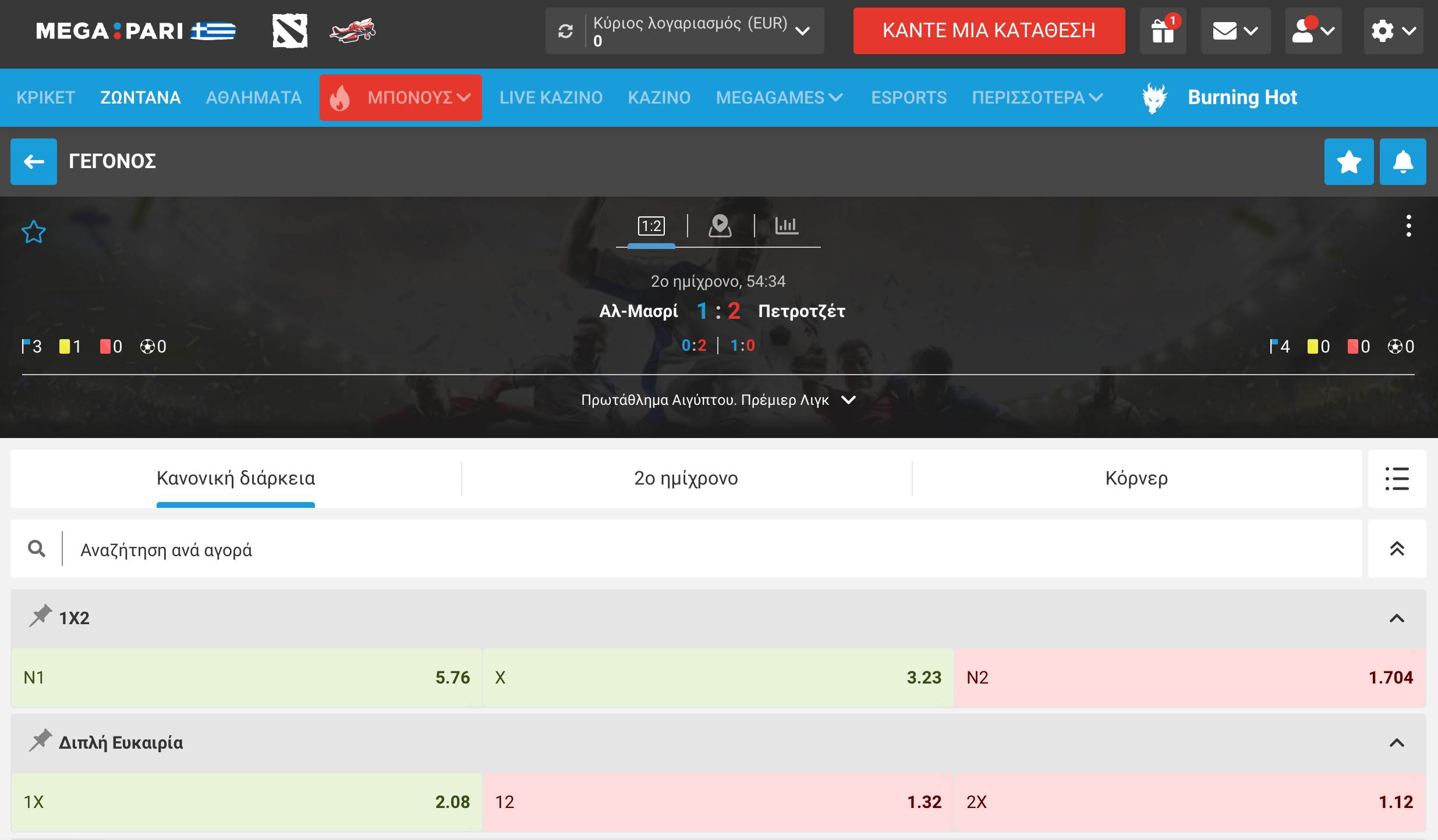 Δεν είναι μόνο το pre-game της Megapari που είναι δυνατό και μπορεί να ικανοποιήσει και τους πιο απαιτητικούς παίκτες, αλλά και το live της, που είναι αρκετά πλούσιο και έχει και πολύ ενδιαφέρον από άποψη αποδόσεων.