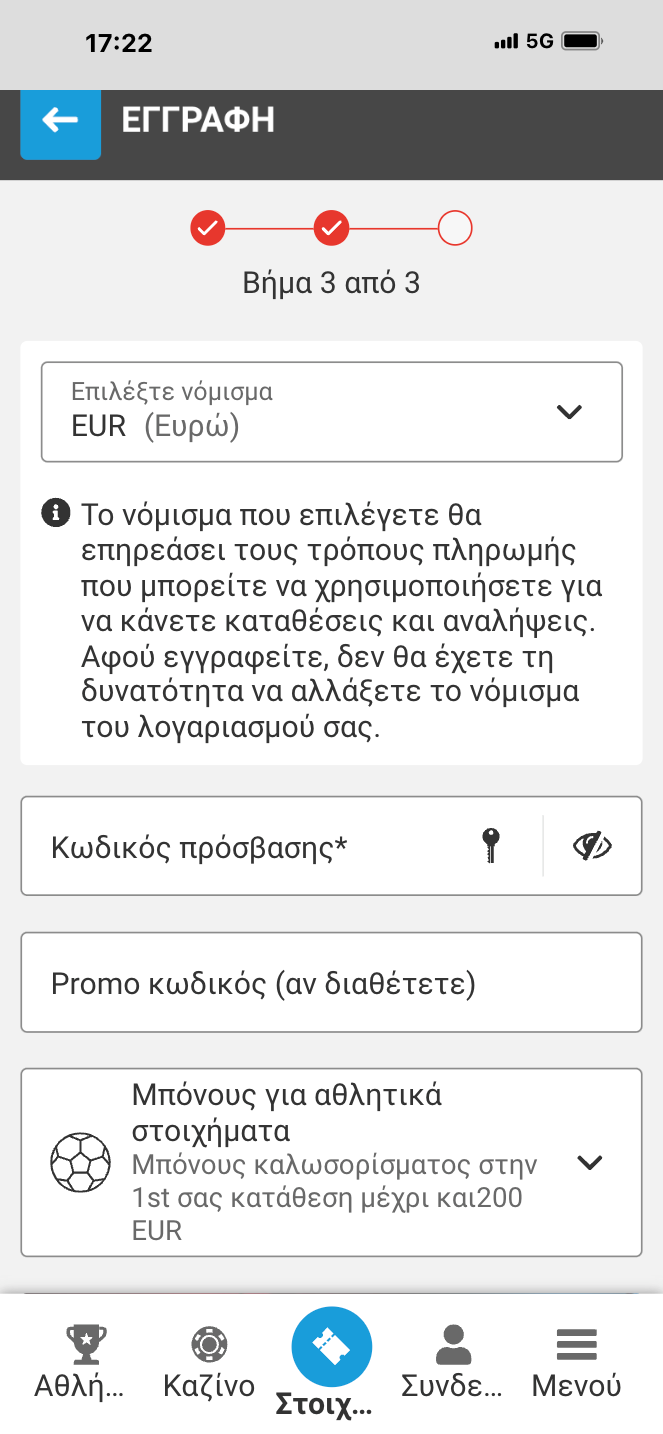 Για να πάρετε το μπόνους, πρέπει αρχικά να κάνετε εγγραφή και ταυτοποίηση του λογαριασμού σας και στη συνέχεια, για κάθε μια από τις δύο πρώτες καταθέσεις (με ελάχιστο ποσό τα 5 ευρώ) θα σας πιστωθεί το αντίστοιχο ποσό!
