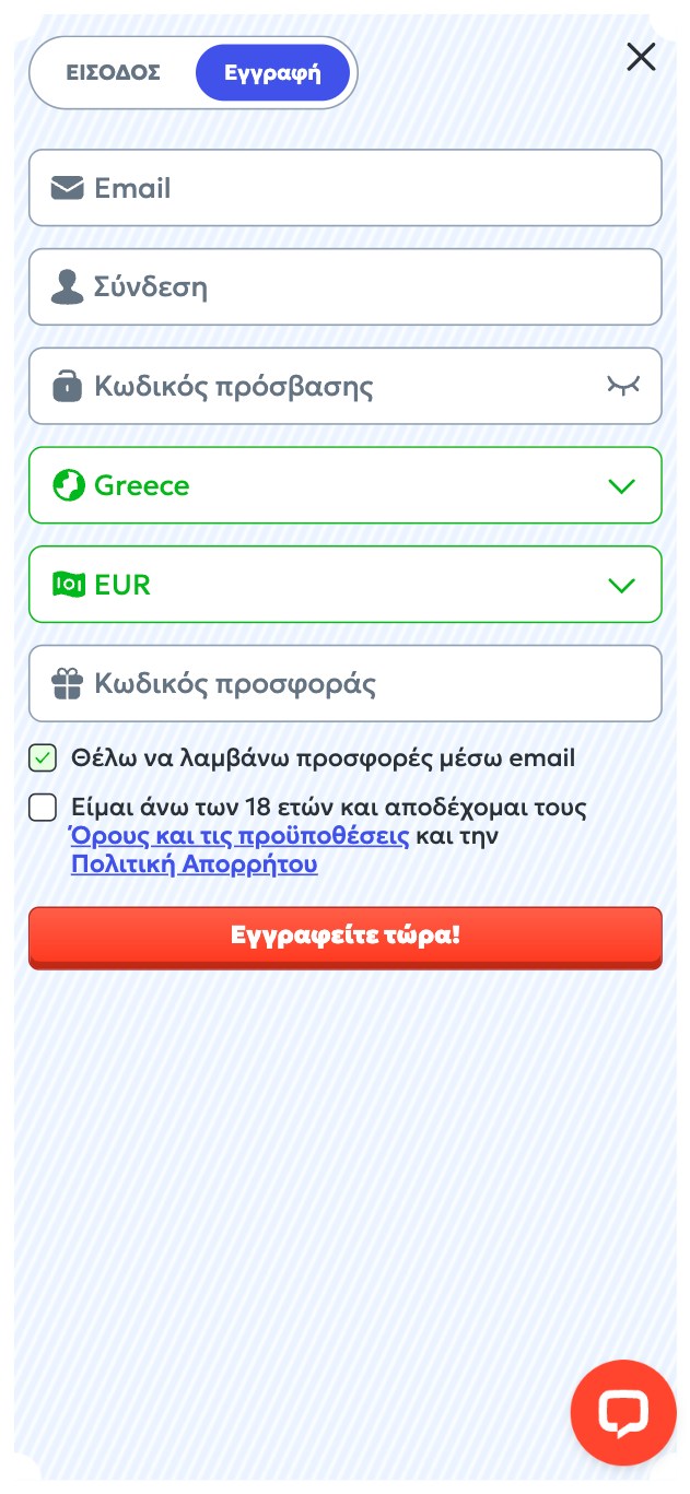 Εκεί θα επιλέξετε το μπόνους που επιθυμείτε (προτείνουμε το sportsbook welcome offer) και θα προχωρήσετε στην πρώτη σας κατάθεση. Βάζετε τικ στο πεδίο που δηλώνει ότι διαβάσατε και συμφωνείτε με τους Όρους Χρήσης και την Πολιτική Απορρήτου της σελίδας και είστε έτοιμοι για παιχνίδι.