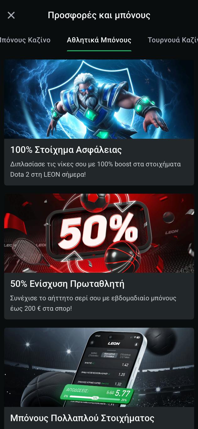 | 31 | LeonBet | 4.2/5 | Μπόνους καλωσορίσματος έως €100 δωρεάν στοίχημα | Διαβάστε την αξιολόγηση |
