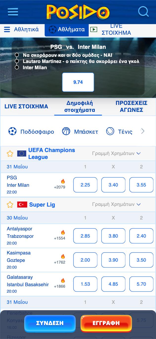 Στο δεξί μέρος της σελίδας θα βρείτε μερικά έτοιμα δελτία που τοποθέτησαν άλλοι παίκτες στην Posido. Αν θέλετε μπορείτε να ποντάρετε και εσείς στα ίδια ακριβώς παιχνίδια με το πάτημα ενός κουμπιού. Τέλος, στην λίστα με τα αθλήματα θα βρείτε τους πιο “hot” και επίκαιρους αγώνες, τουρνουά κ.λπ. καθώς και μία κατηγορία ονόματι Odds Boost όπου προσφέρονται συγκεκριμένες επιλογές, συνήθως για μεγάλα event, με αυξημένες αποδόσεις.