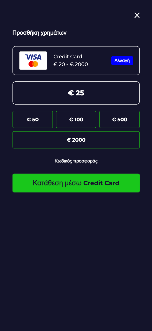 Η ελάχιστη κατάθεση που μπορείτε να κάνετε είναι 10€ με Google Pay και Apple Pay, 15€ με τραπεζική μεταφορά, ενώ με όλες τις άλλες μεθόδους το ελάχιστο ποσό ανεβαίνει στα 20€. Οι καταθέσεις είναι άμεσες και φυσικά είναι και δωρεάν, καθώς από την πλευρά της στοιχηματικής δεν υπάρχει κανένα όριο.