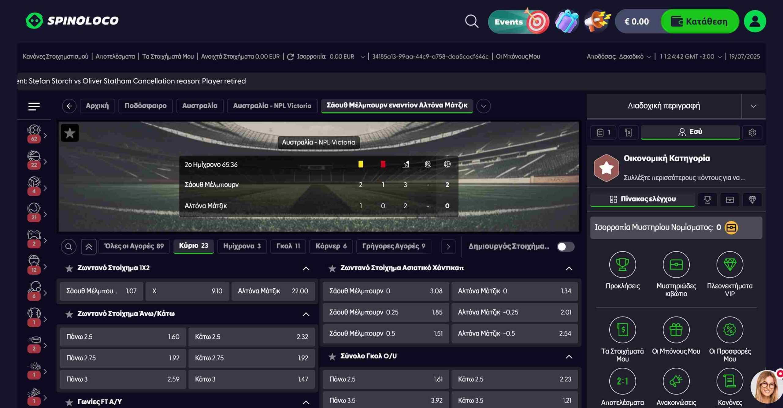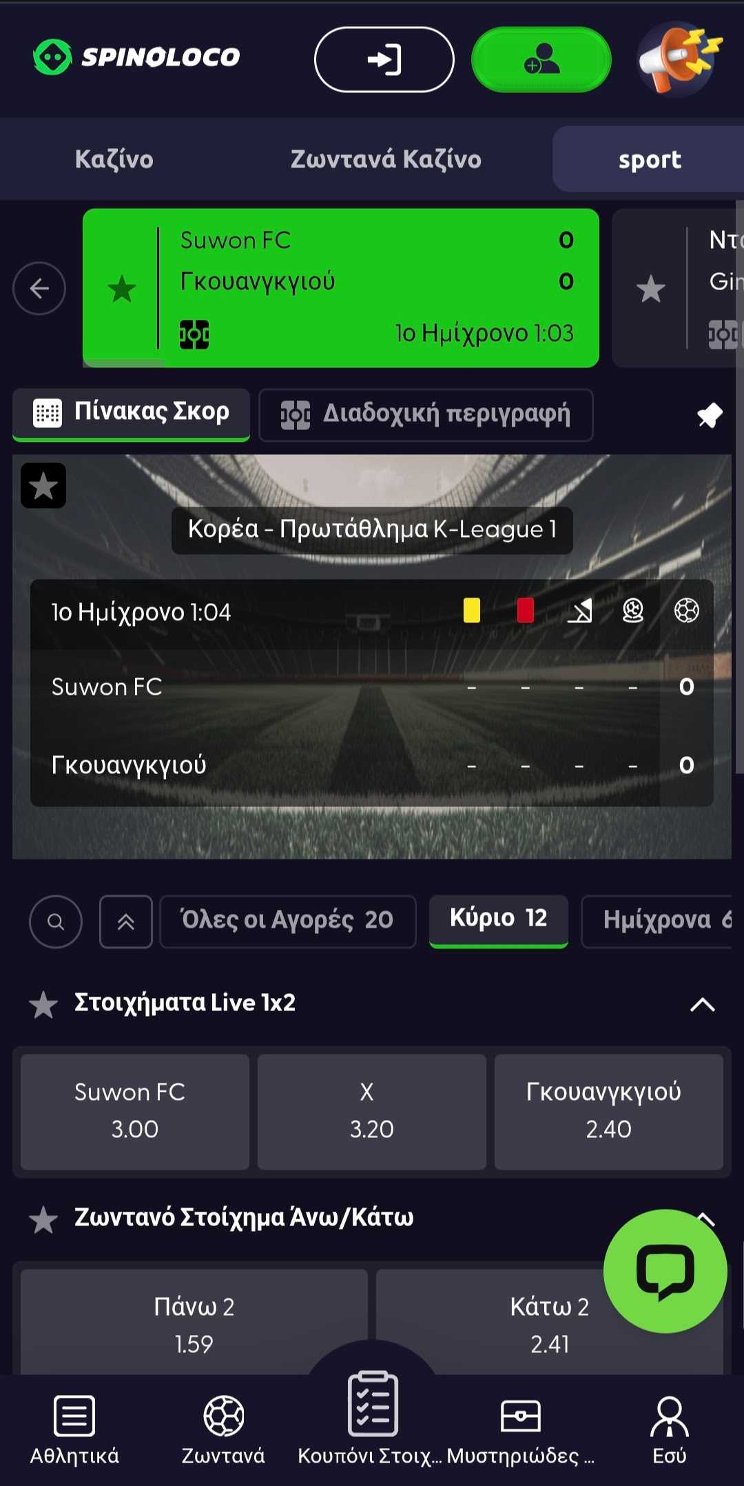 Τα κυριότερα σπορ θα τα βρείτε όλα, όπως και αρκετά άλλα αθλήματα – πινγκ πονγκ, μπάντμιντον, μπιτς βόλεϊ κτλ. Οι αγορές είναι σε καλό επίπεδο – όπως και στο pre-game, ενώ και εδώ υπάρχουν πολλά ειδικά παικτών, πολλές επιλογές σε κάρτες και κόρνερ αλλά και χάντικαπ. Και εδώ έχει bet builder (το αναφέρει ως “δημιουργό στοιχήματος”), οπότε καταλαβαίνετε ότι οι επιλογές αυξάνονται και τα εναλλακτικά μπετ εκτοξεύονται.