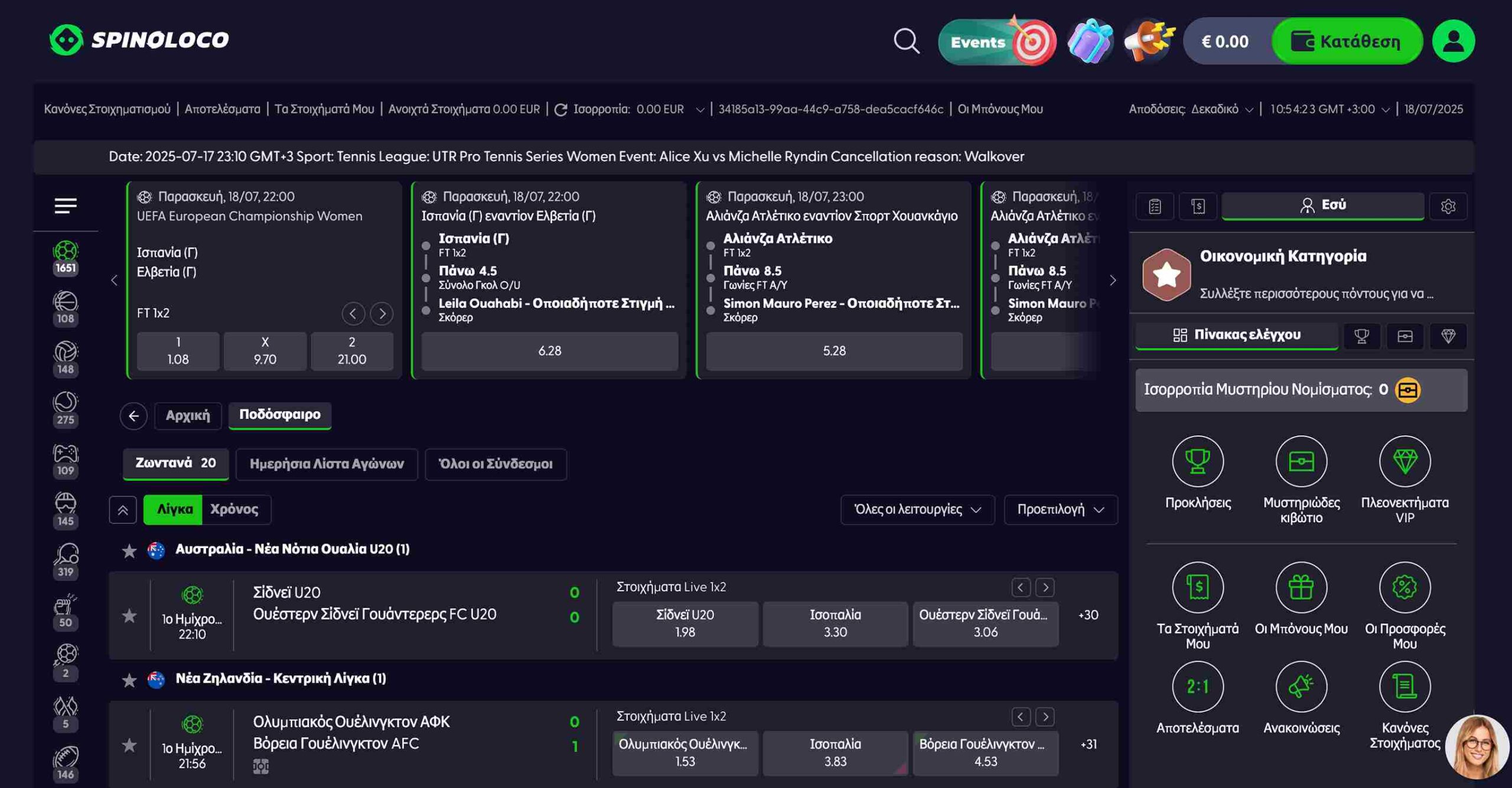 Παρόλο που το μεγαλύτερο βάρος της πλατφόρμας πέφτει στο κομμάτι του καζίνο, το αθλητικό στοίχημα στη Spinoloco είναι σε πάρα πολύ ικανοποιητικό επίπεδο.