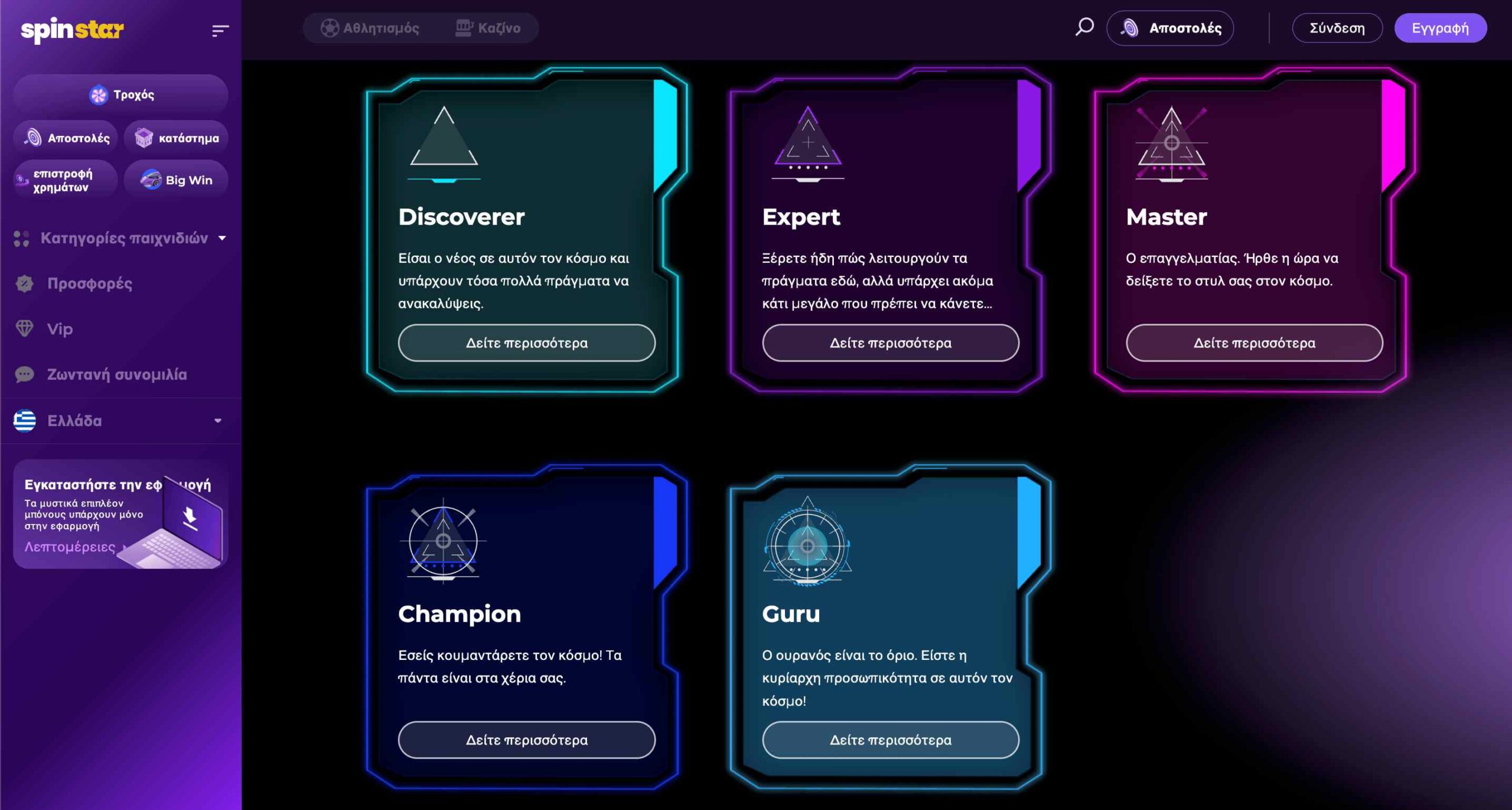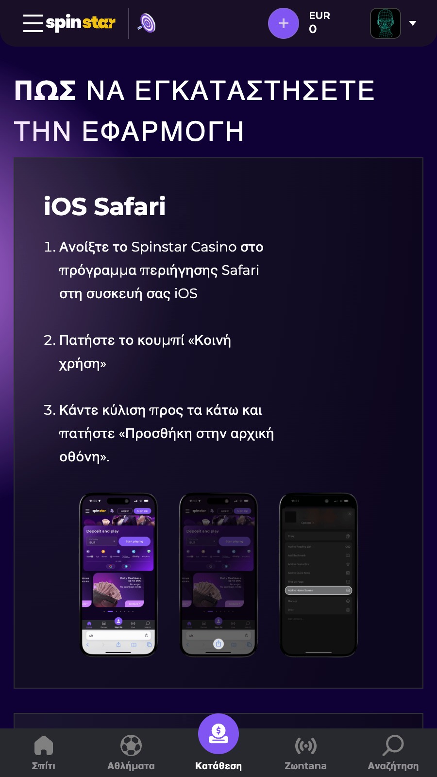 Αν θέλετε να έχετε την εμπειρία του betting στην παλάμη του χεριού σας, τότε η Spinstar είναι η στοιχηματική που ψάχνετε. Τόσο η ίδια η πλατφόρμα όσο και η ειδική εφαρμογή για κινητά που έχει, σας δίνουν την ευκαίρα να τα έχετε όλα μπροστά σας, τη στιγμή που τα θέλετε, από όπου και να βρίσκεστε!