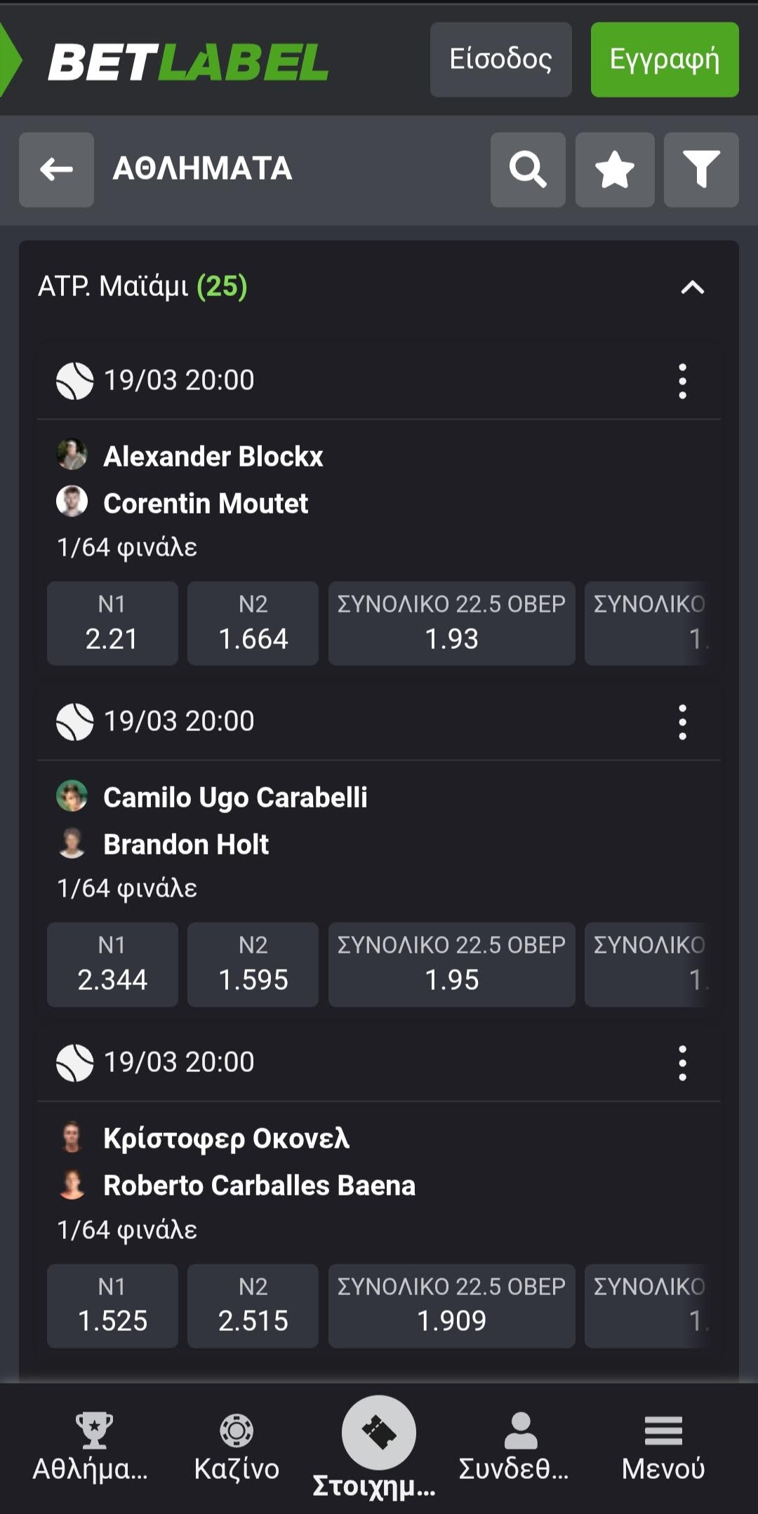 Να σημειώσουμε ότι η BetLabel έχει μακροχρόνιες αγορές στο τένις και για τα εβδομαδιαία τουρνουά (σε κάποια, με ειδικά επίσης) αλλά και από πολύ νωρίς για τα Grand Slam σε άνδρες και γυναίκες.