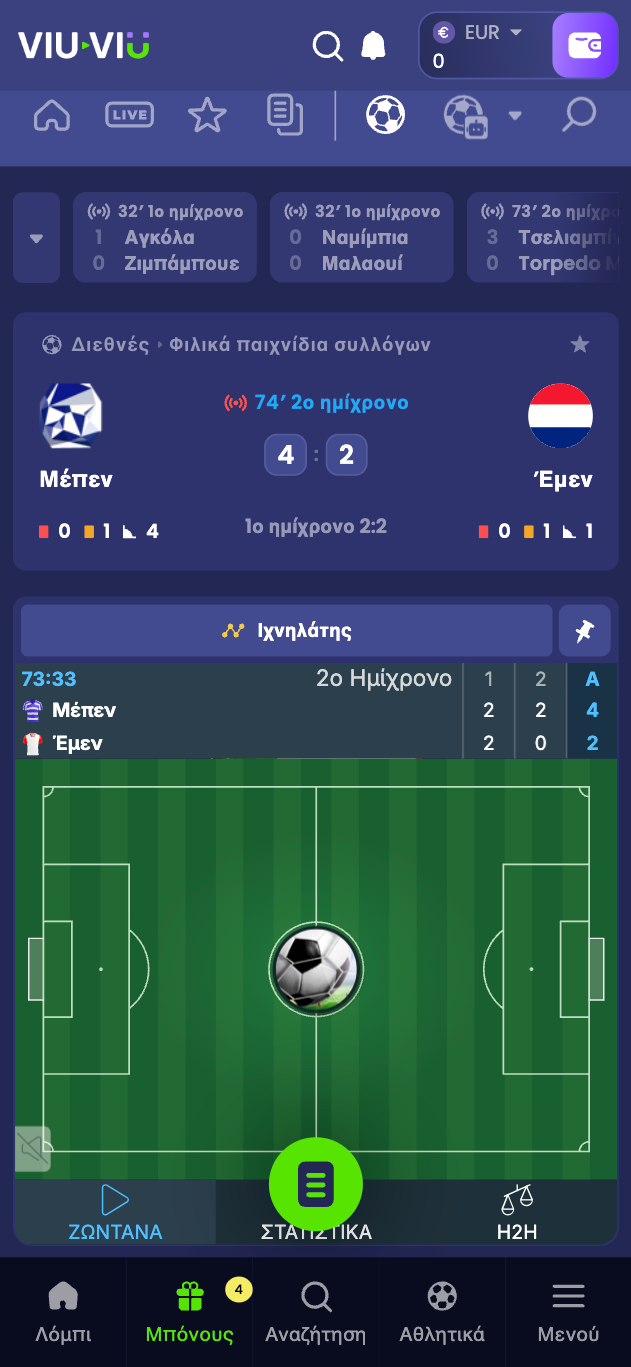Σημαντική προσθήκη είναι και η δυνατότητα συνδυασμού επιλογών pre-game και live στο ίδιο δελτίο ή σύστημα. Ταυτόχρονα στα περισσότερα live μπορείτε να συνδυάσετε και επιλογές bet builder. Εννοείται πως υπάρχει και πίνακας με live στατιστικά αγώνα, timeline και διαδραστικό 2D γήπεδο.