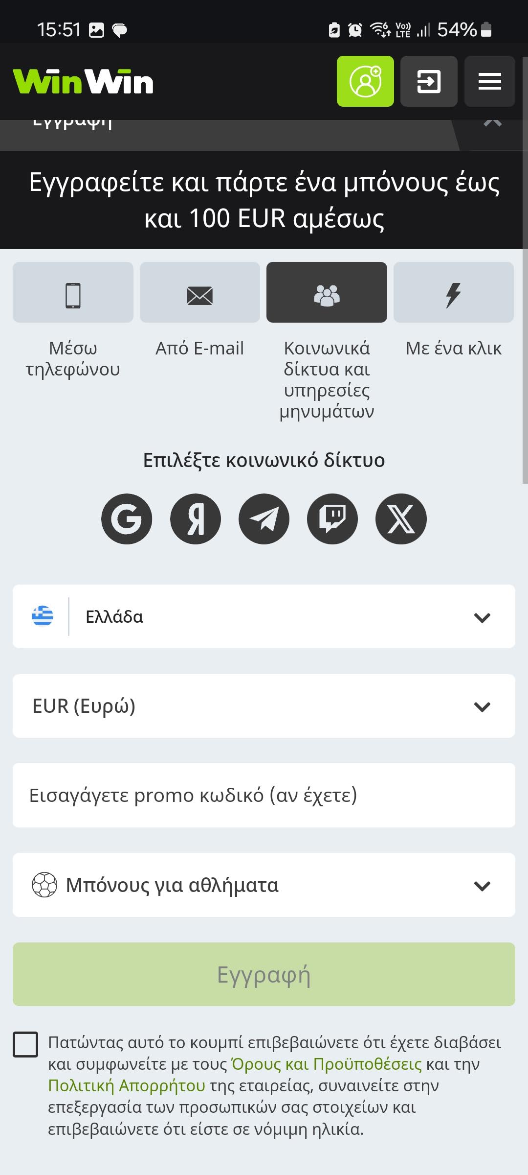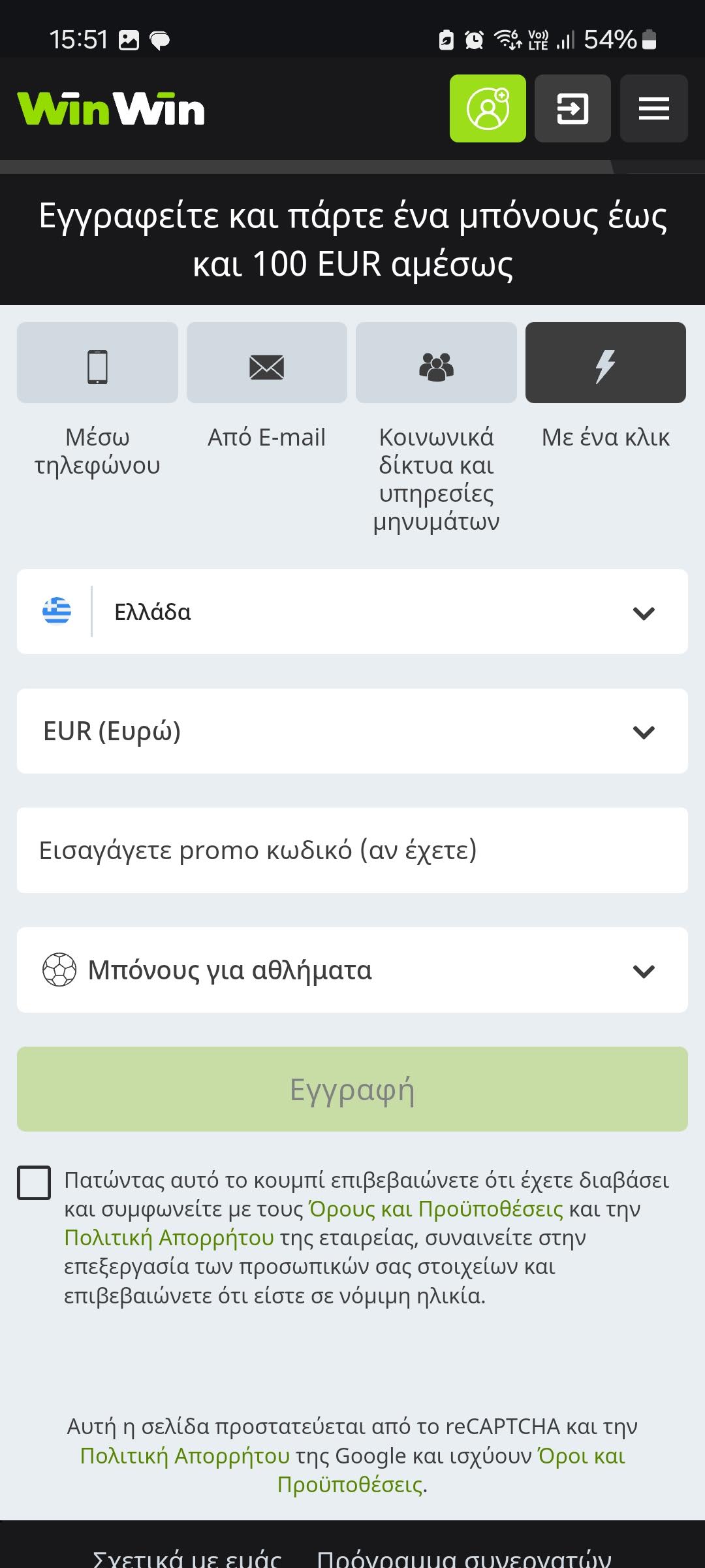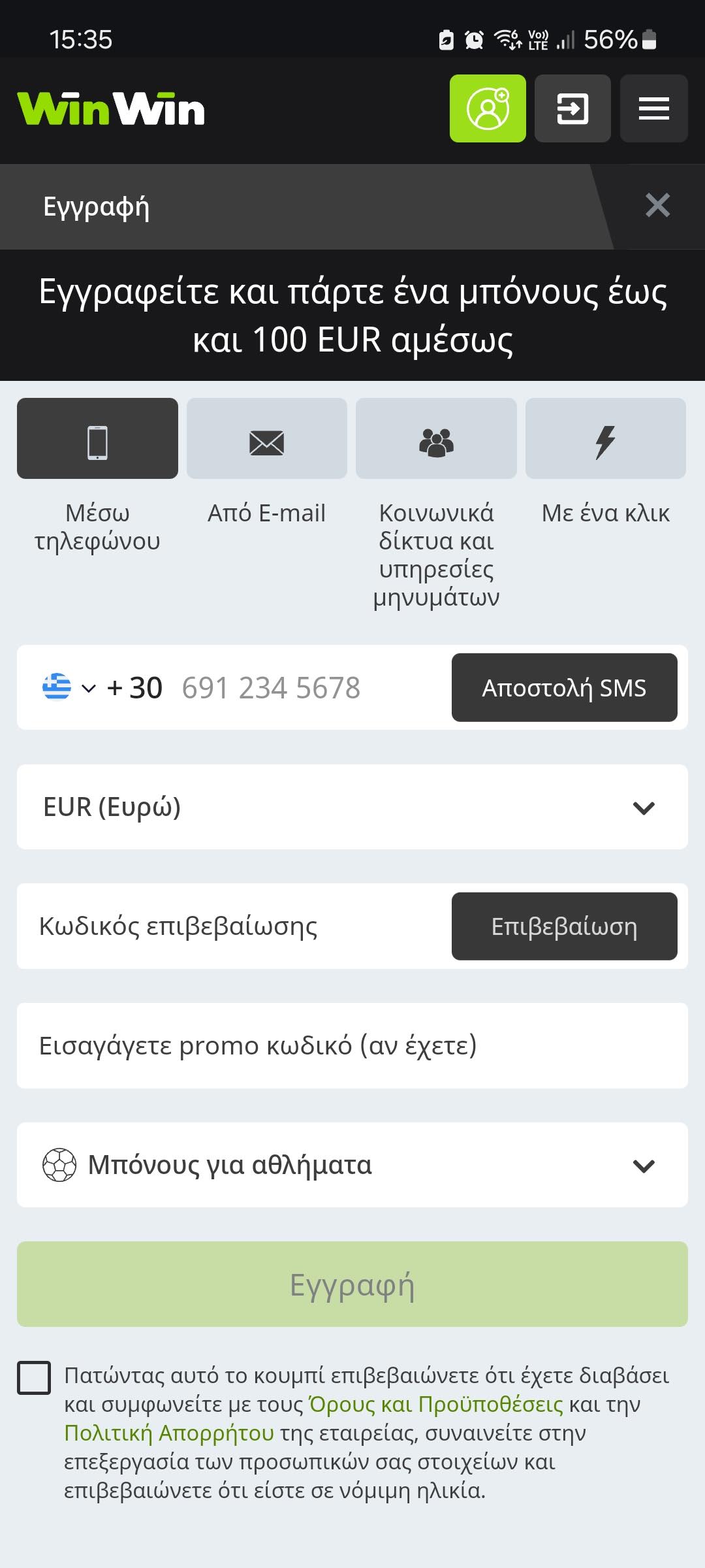 Η WinWin σας δίνει τέσσερις διαφορετικές επιλογές για να κάνετε εγγραφή. Μπορείτε να εγγραφείτε μέσω τηλεφώνου, με email, μέσω social media ή και να κάνετε γρήγορη εγγραφή με “ένα κλικ”.