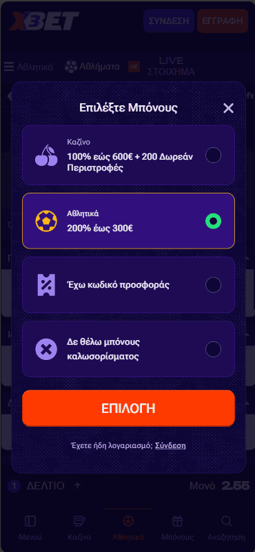 Συγκεκριμένα, υπάρχει ΑΠΟΚΛΕΙΣΓΙΚΟ μπόνους καλωσορίσματος 155% έως 750€ με τον κωδικό WINWIN.